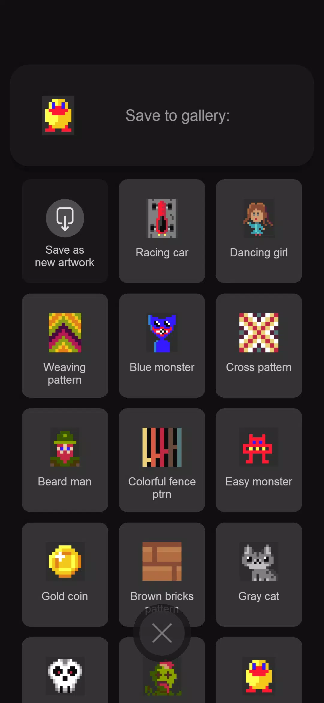 Le Pixel Art Maker Studio est une application délicieuse et conviviale de Pixel Art Drawing Editor conçue pour que tout le monde puisse libérer leur créativité. Que vous souhaitiez créer votre propre personnage, concevoir une image emoji, créer des avatars ou produire d'autres illustrations captivantes, cet outil de dessin de pixel est votre solution incontournable. Laissez votre imagination se déchaîner lorsque vous dessinez des monstres, des voitures, des motifs de briques, des autocollants, des logos et un éventail d'autres projets amusants et créatifs. Plongez dans le monde de Pixel Art et créez votre héros de pixel, Knight, Zombie et une variété de personnages pour les RPG de pixels, la course, le tireur et d'autres genres de jeu.