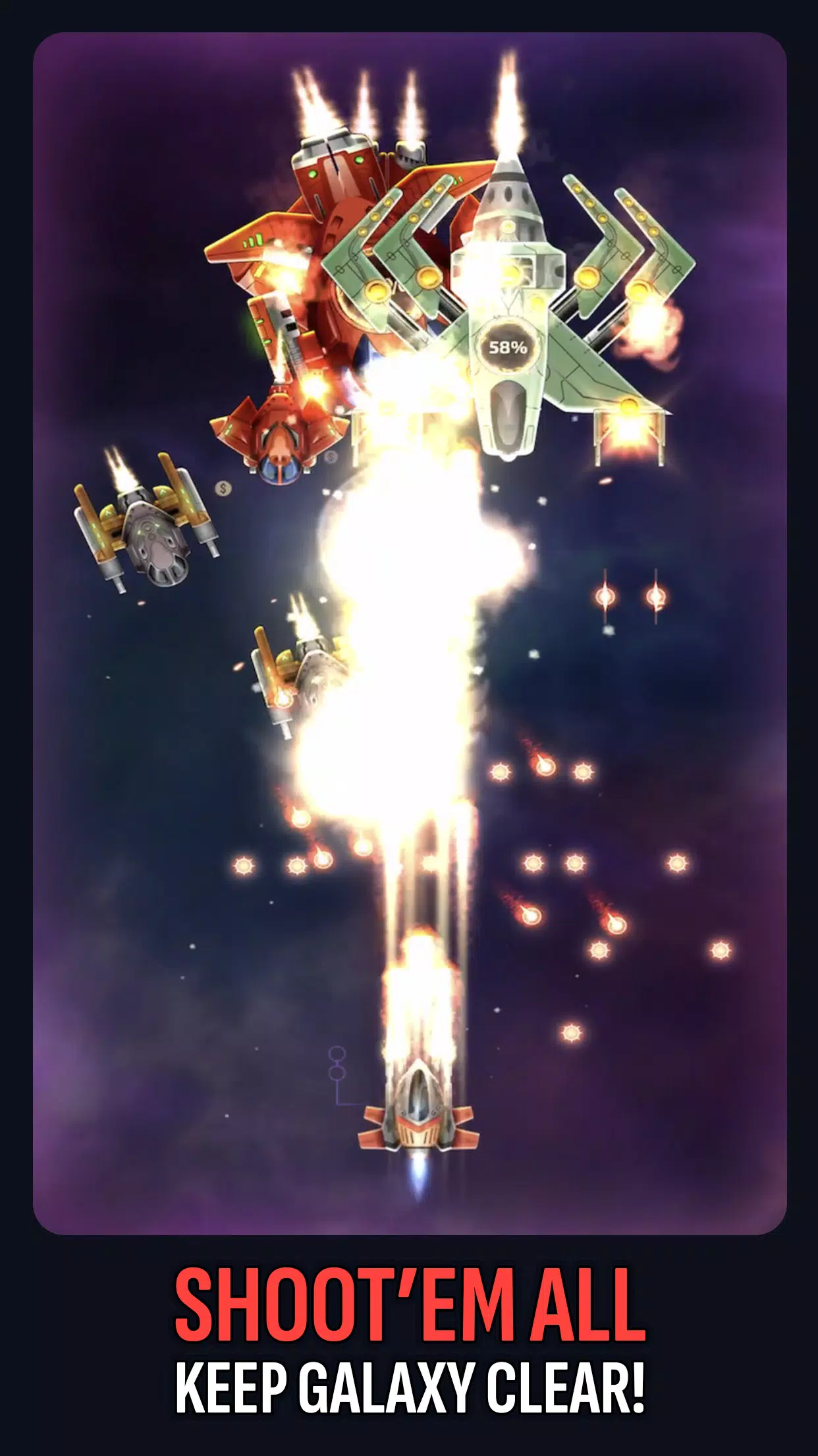 - 通过太空射击游戏的游戏玩法体验肾上腺素的冲动,这会挑战您的极限。